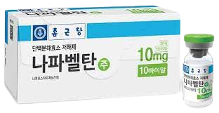 나파벨탄주는 무색투명한 바이알에 흰색의 덩어리가 든 쓸 때 녹여 쓰는 주사제입니다. 이 약은 (주)종근당에서 제조되며, 전문의약품으로 분류됩니다. 허가일은 2016년 7월 28일이며, 품목기준코드는 201604660입니다. 이 약 1바이알 (31밀리그램) 중 유효성분으로 나파모스타트메실산염 10 밀리그램이 포함되어 있습니다. 첨가제로는 D-만니톨, 숙신산이 포함되어 있습니다. 👏